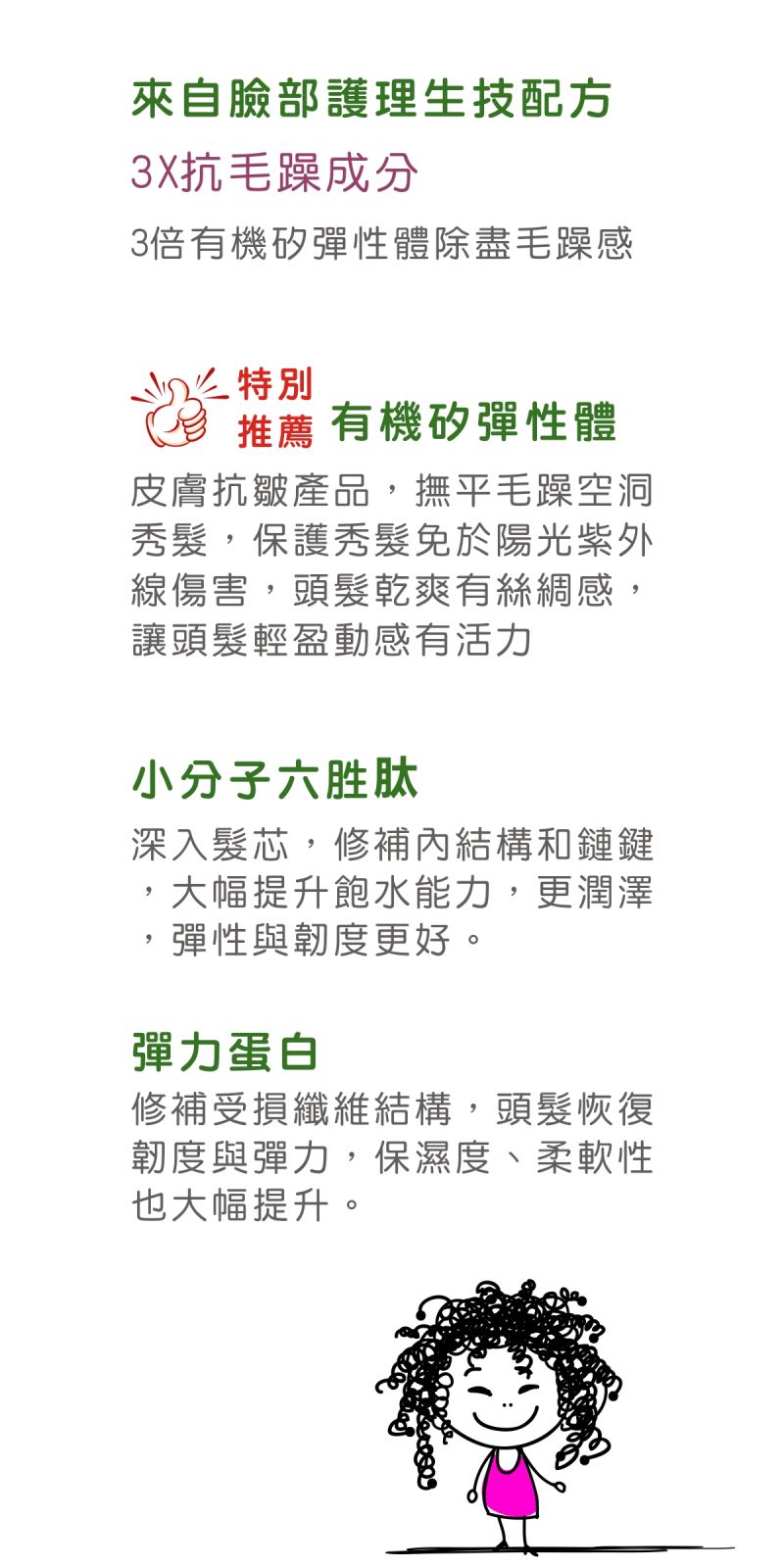 ※  對抗毛躁效果特別好,滑順觸感超越市面所有產品,滑溜的絲綢觸感,讓人心情愉悅月。