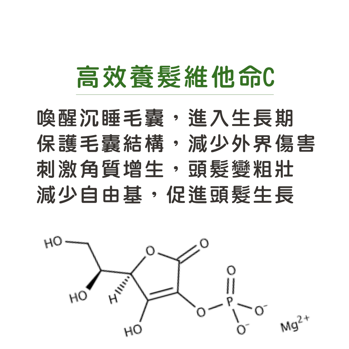 ※ 活化頭髮色素母細胞,深化頭髮顏色,減緩白化速度,降低白髮數量。
