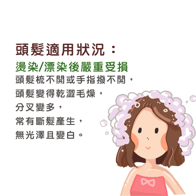 ※ 中和頭髮靜電,防止頭髮內蛋白質流失,避免髮尾分叉。