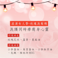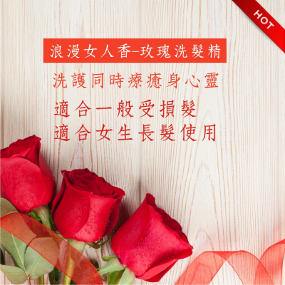 ※ 玫瑰精油調味,淡淡的香味,洗髮同時放鬆心情,頭髮清新好舒暢。