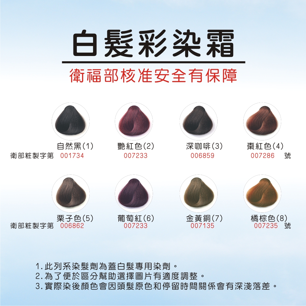 ※ 八種顏色可選(大盒裝, 一.二劑各200ml) , 自然黑 / 艷紅色 / 深咖啡 / 棗紅色 / 栗子色 / 葡萄紅 / 金黃銅 / 橘棕色 。