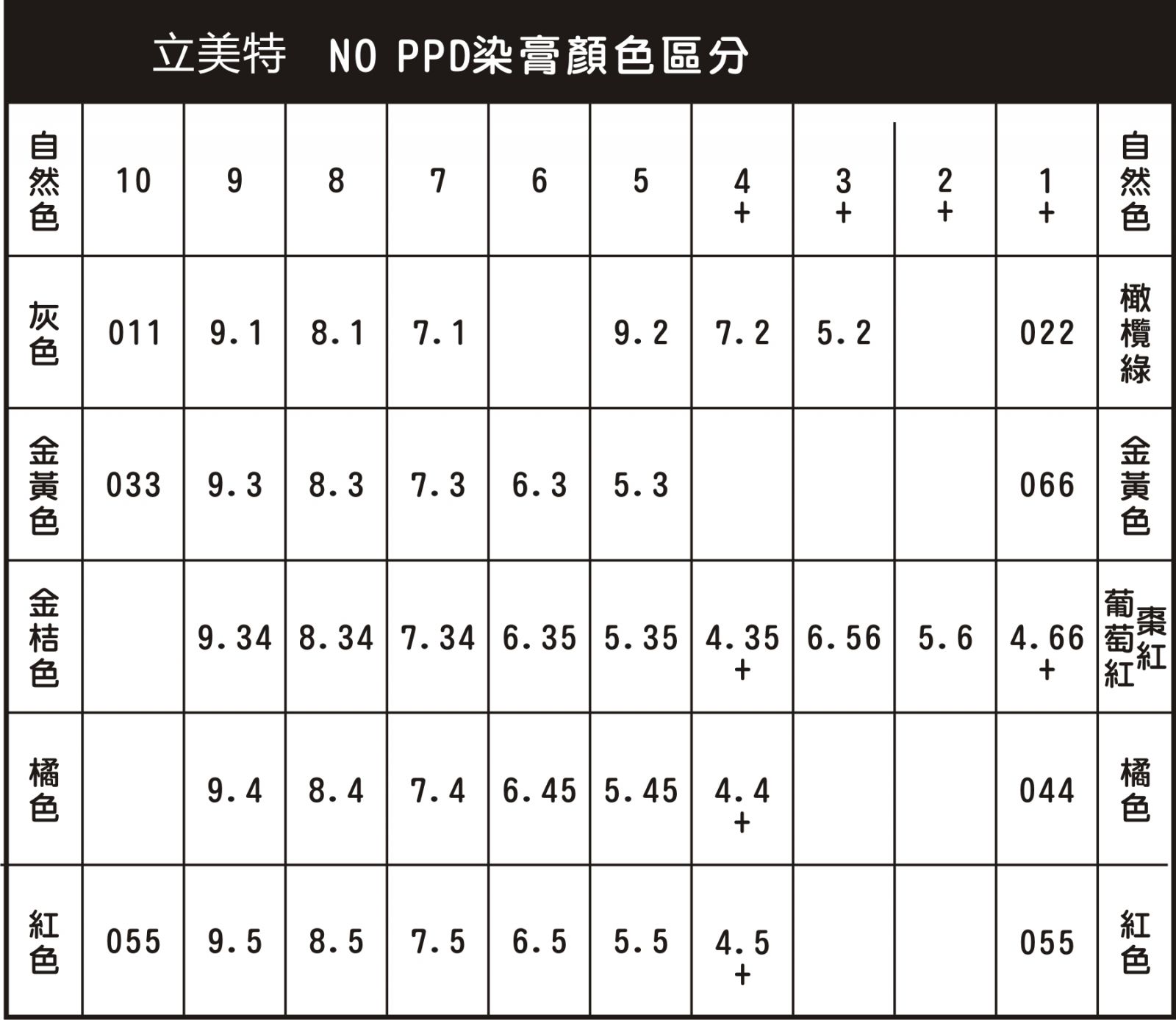 ●紅色:使用1:1(雙氧乳12%)或1:2(雙氧乳9%),在原生髮上染30分鐘,不用加熱。