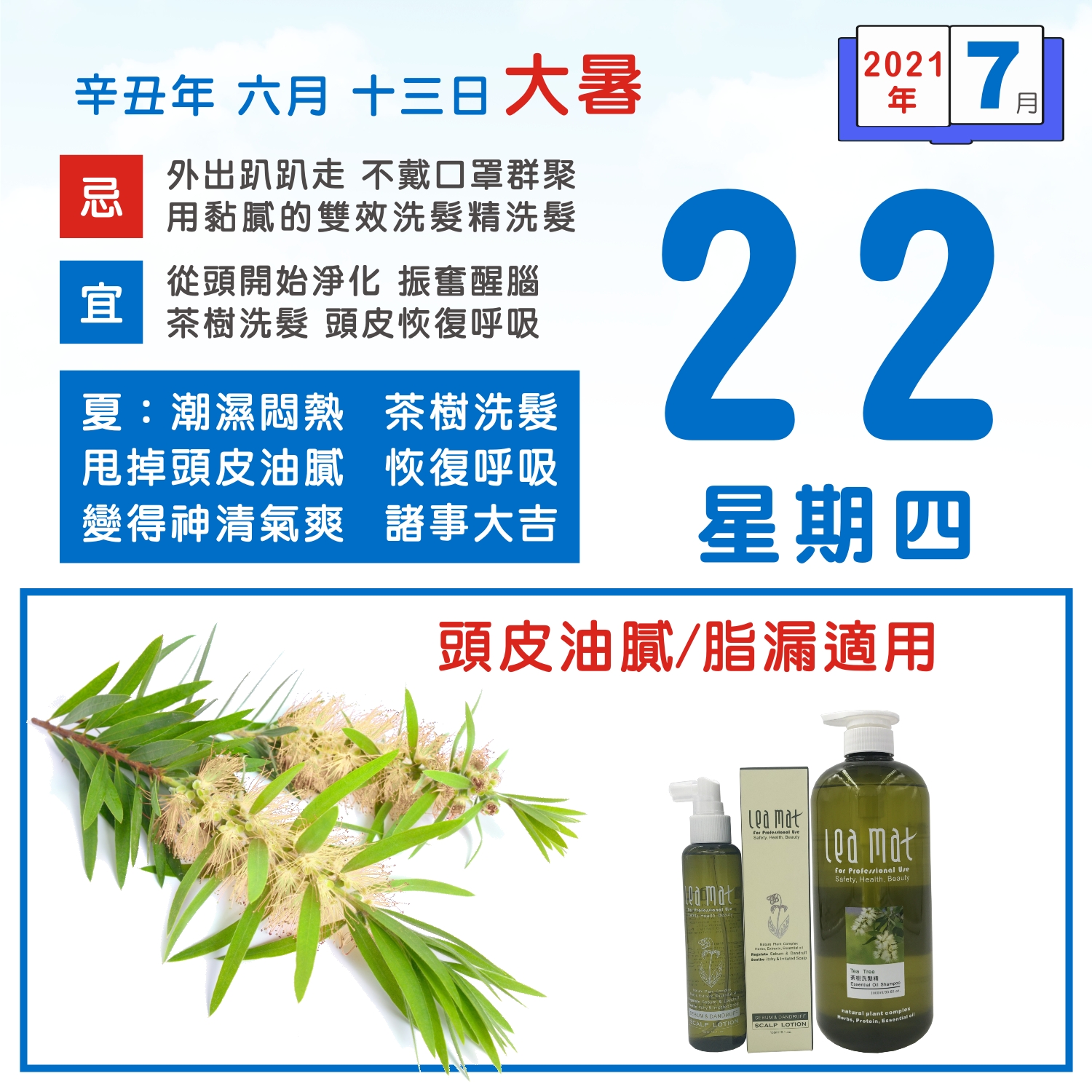 - 春天天氣多變,造成頭皮不穩定,乾、油、癢、紘、脂漏性皮膚炎都來了,建議用柑橘組合